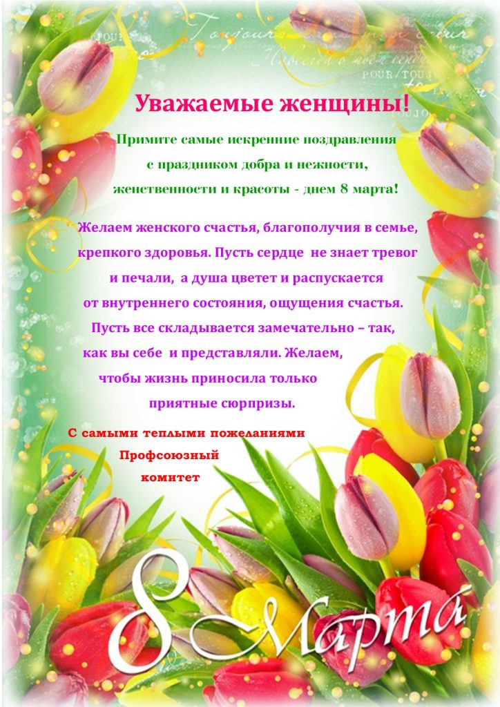 Профсоюзный комитет поздравляет всех женщин с 8 марта!