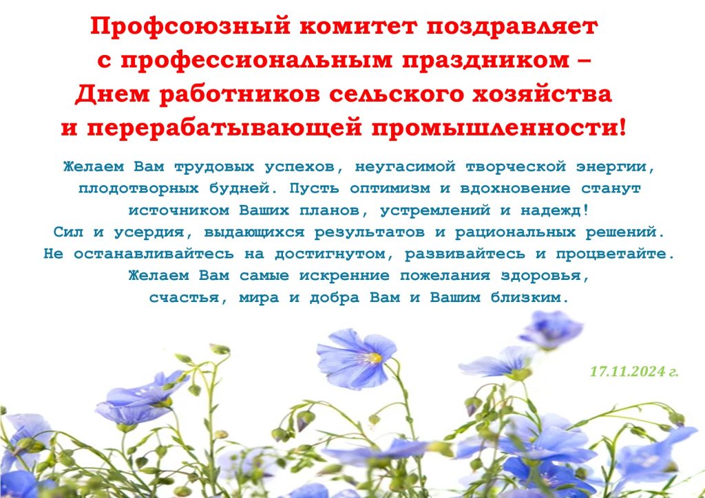Профсоюзный комитет поздравляет с профессиональным праздником — Днем работников сельского хозяйства и перерабатывающей промышленности!