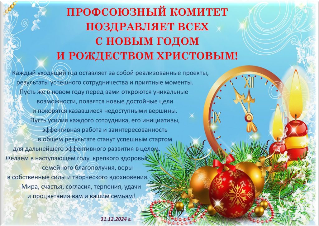 Профсоюзный комитет поздравляет всех с Новым годом и Рождеством Христовым!